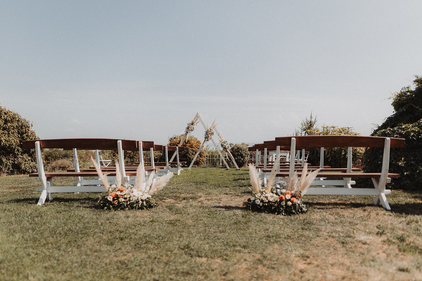 Az időjárás tökéletes volt, a dekoráció pedig egészen különleges — FLÓRA floral botanical atelier gyönyörű munkájának köszönhetően, amely tökéletesen visszatükrözte a pár stílusát. Minden apró részlet gondosan kidolgozott volt, és mi örömmel merültünk el ezekben, hogy megörökítsük.